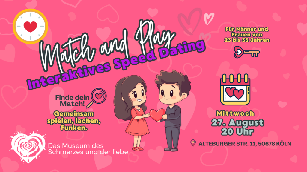 💬 Beim Event erwarten dich 6–10 Mini-Dates à 10–15 Minuten. Aber keine Sorge – Smalltalk brauchst du nicht mitzubringen. An jeder Station gibt’s etwas zu tun: ein Spiel, eine kreative Aufgabe, ein kleines Abenteuer. Und ganz nebenbei: echtes Kennenlernen. Zur Unterstützung findest du dort auch charmante Fragen, die mehr können als „Und, was machst du so?“